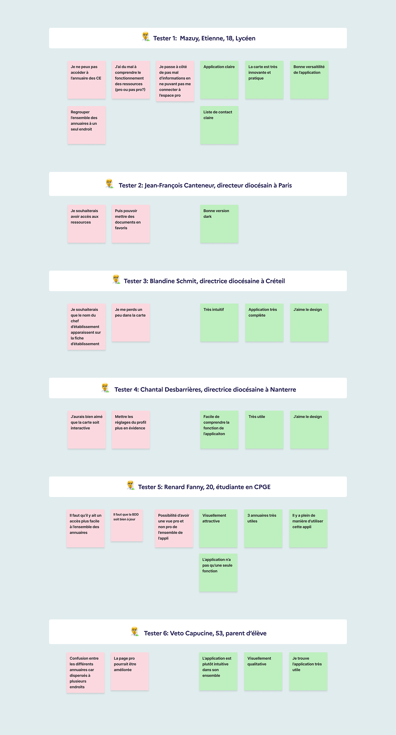 Pour concrétiser l’ensemble des idées, nous avons créé des maquettes et des prototypes interactifs. À chaque fonctionnalité importante ajoutée, nous organisions des tests utilisateurs auprès d’un panel représentatif des utilisateurs de l’application du Comité Régional de l’Enseignement Catholique. Nous avons créé des scénarios de test et des tâches spécifiques pour comprendre les besoins et les attentes des utilisateurs.